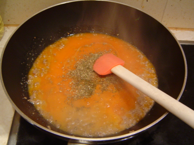 Once the mince has been browned and Basics white wine has been added, add the Basics tomato soup and herb mix. Bring to a boil, then reduce to a low simmer. Skim off all the fat while waiting for the whole thing to reduce by about half its volume.