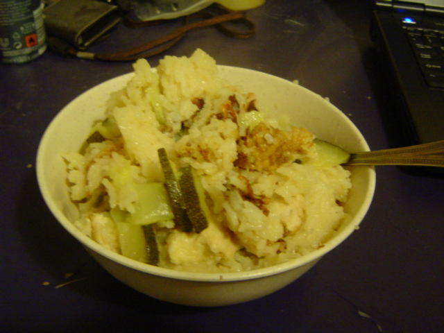 The wine dominated the flavour of the rice, so perhaps I should have made up for it by adding more cheese and perhaps other herbs as well. Overall however I am satisfied with how this has turned out and would consider exploring more combinations I could put into the rice cooker.