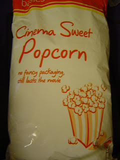 There has been a recent trend towards having gourmet popcorn, that is, popcorn flavoured with exciting flavours, like jalapeno and cheese. I suspect that this started or at least took off when Pret A Manger began to offer popcorn alongside crisps and other snacks at their stores. In the face of this, it would be interesting to see how the Basics popcorn, a representative of the cinema popcorn we're so familiar with, would hold up against its more upmarket counterparts.