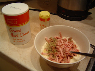 Combine egg and defrosted mince with Basics Grated Hard Cheese and Herb Mix.